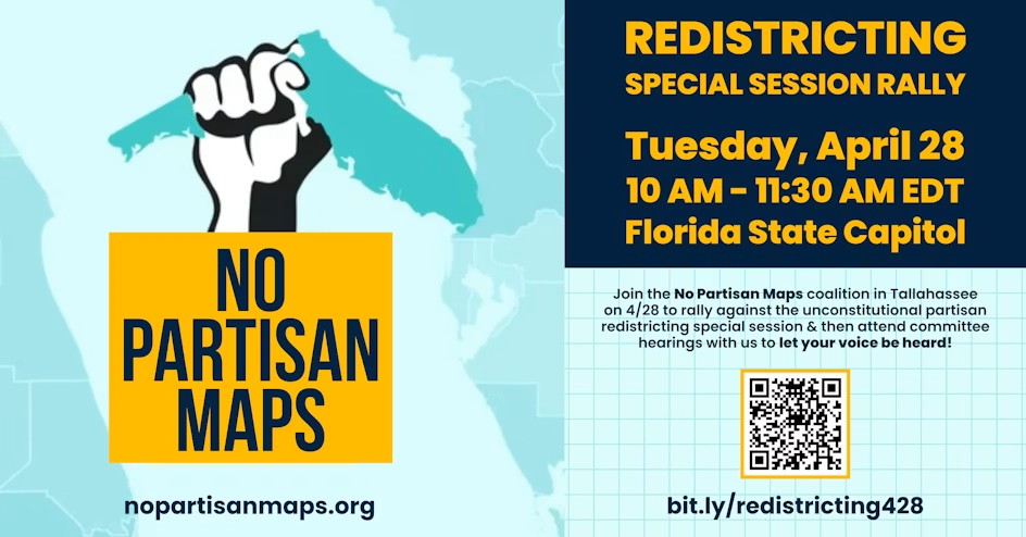 Voting rights groups have organized buses from Jacksonville and throughout the state to rally at the Capitol in opposition to the redistricting plan. Meanwhile, House and Senate leaders have announced plans for another 18-day special session starting May 12th to adopt the state budget --- which legislators failed to do during the regular session.